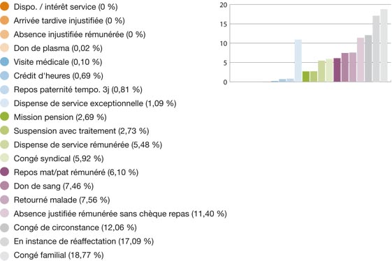 Outre la maladie, l’accident de travail et la maladie professionnelle, les dispositions légales prévoient certaines dispenses de services aux motifs divers se répartissant comme suit :